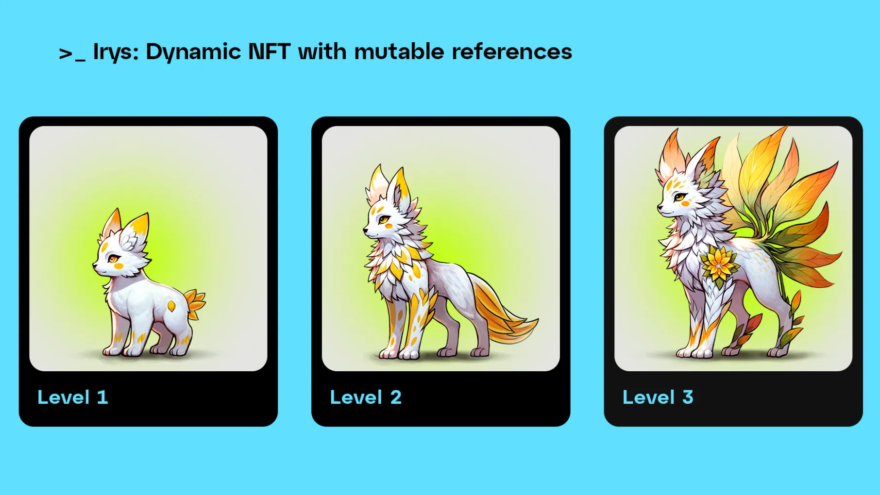 In this guide, you will create a dynamic NFT using Irys's mutability features. Dynamic NFTs are NFTs whose metadata evolves over time. They are commonly used in: